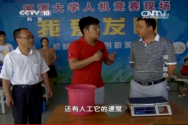 三翼新聞?dòng)?/span>(實(shí)習(xí)記者 王聰艷)10月17日,央視教育頻道《我愛發(fā)明》欄目播放了湘潭大學(xué)機(jī)械學(xué)院教授馬秋成發(fā)明和改進(jìn)全自動(dòng)蓮子去心機(jī)的全過程。 “湘蓮甲天下,潭蓮冠湖湘”。湘潭市蓮子素來以粒大飽滿,質(zhì)地細(xì)膩,清香鮮甜聞名。但千年來,湘蓮的蓮子去心生產(chǎn)始終是傳統(tǒng)人工方法。工人通過鋒利的鉆頭來去除堅(jiān)硬的蓮心,雖然操作簡便,但這鐘種方法不僅費(fèi)時(shí)費(fèi)力,效率低下,而且存在極大的危險(xiǎn)性。在這種情況下,土生土長的馬教授決心改變這種傳統(tǒng)的去心方式。 馬教授的一代機(jī)是利用鏈條轉(zhuǎn)動(dòng)來移動(dòng)蓮子,通過高速旋轉(zhuǎn)的鉆頭來去除蓮子。但在一代機(jī)的生產(chǎn)過程中易出現(xiàn)鉆頭打偏的問題,并且蓮心易被污染。在經(jīng)過幾天深思之后,馬教授改進(jìn)了一代機(jī),于是二代機(jī)誕生了。二代機(jī)相較于一代機(jī),蓮子的出產(chǎn)量、打孔精確度都有了明顯的提高,但是由于蓮子大小不一以及鉆頭旋轉(zhuǎn)時(shí)直徑會(huì)擴(kuò)大,因此導(dǎo)致了生產(chǎn)過程中蓮子的浪費(fèi)。 面對(duì)手工工人“這機(jī)器一定有問題,不行”的咄咄逼人,馬教授卻表示自己有信心,自己已發(fā)現(xiàn)了不足,他相信自己會(huì)改好二代機(jī)!幾日后,在琴湖食府人機(jī)大戰(zhàn)拉開了帷幕。八名人工對(duì)戰(zhàn)機(jī)器。改良后的三代機(jī)通過調(diào)節(jié)蓮子位置的壓板,在數(shù)量和質(zhì)量口感上贏過了人工。最終,馬教授的全自動(dòng)蓮子去心機(jī)贏得了比賽!