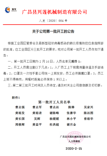 興蓮機械已開工,公司已向每位員工發(fā)放了口罩、消毒液等,到崗的員工們“全副武裝”投入工作中,安靜而忙碌。歡迎廣大蓮農電話咨詢 廣昌縣興蓮機械制造有限公司 聯(lián) 系 人:戈先生 聯(lián)系電話:0794-3630809 手 機 號:18322981756 公司地址:江西廣昌工業(yè)園區(qū)清水村永佳路2號